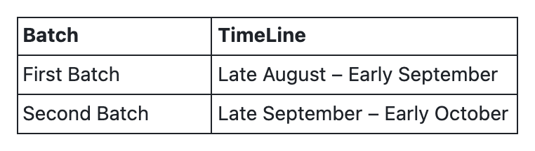 Today, we are very pleased to share with you the latest updates on production and shipping arrangements. Should there be any changes in the future, we will inform you at the earliest possible time.